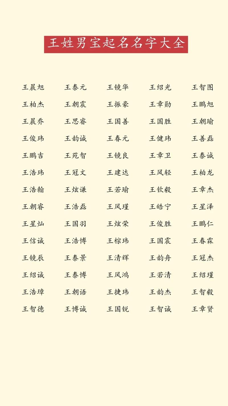 给宝宝起名是一件既重要又幸福的事,尤其是当宝宝姓氏中缺水时,更需要精心挑选一个寓意吉祥、五行补缺的名字。对于姓王的宝宝来说,以下起名大全可供参考: